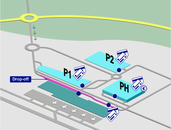 - Parkomat parkirišča P1, P2, drop off ter ob prihodni avli Terminala A: Mastercard, Visa, Diners (samo plačilne kartice).